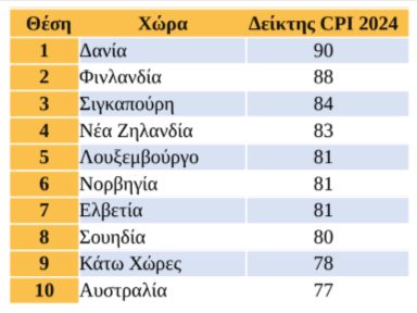 Οι 10 λιγότερο διεφθαρμένες χώρες