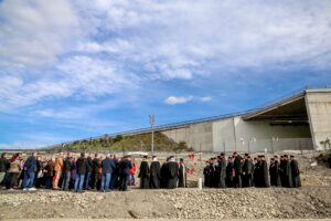 Βαρύ ήταν το κλίμα και βαθιά συγκινητικό στο τρισάγιο που τελέστηκε σήμερα στον τόπο της τραγωδίας των Τεμπών όπου συγκρούστηκαν τα δύο τρένα.