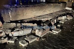 Οι σοβαρότερες ζημιές προκλήθηκαν στην πλατεία του λιμανιού όταν τμήμα του νότιου τοιχίου της αποκολλήθηκε πιθανότατα λόγω της μετατόπισης του βάρους της βάσης του μεγάλου πλατάνου από τους ισχυρούς ανέμους.