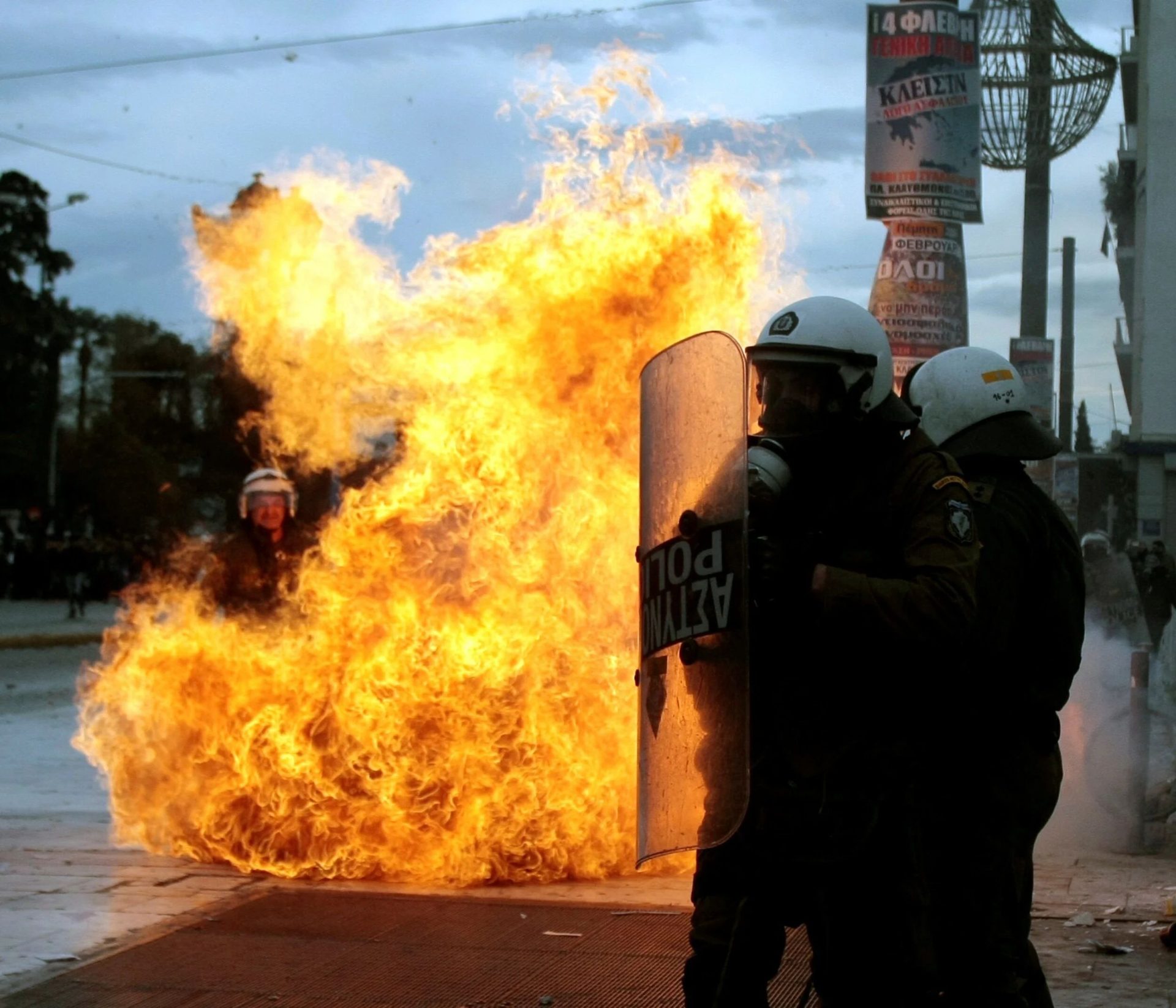Συγκεκριμένα, οι άγνωστοι πέταξαν τουλάχιστον πέντε βόμβες μολότοφ από την πλευρά των φοιτητικών εστιών προς τα ΜΑΤ.