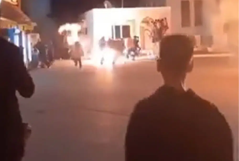 Οι νεαροί που πέταξαν τα βεγγαλικά συνέχισαν βάζοντας στο στόχαστρό τους και το πνευματικό πολιτιστικό κέντρο Μαλώνας. Από την ισχυρή έκρηξη εκδηλώθηκε φωτιά στο μπροστινό τμήμα του πνευματικού κέντρου, ενώ έσπασαν τα τζάμια της πόρτας και των παραθύρων.