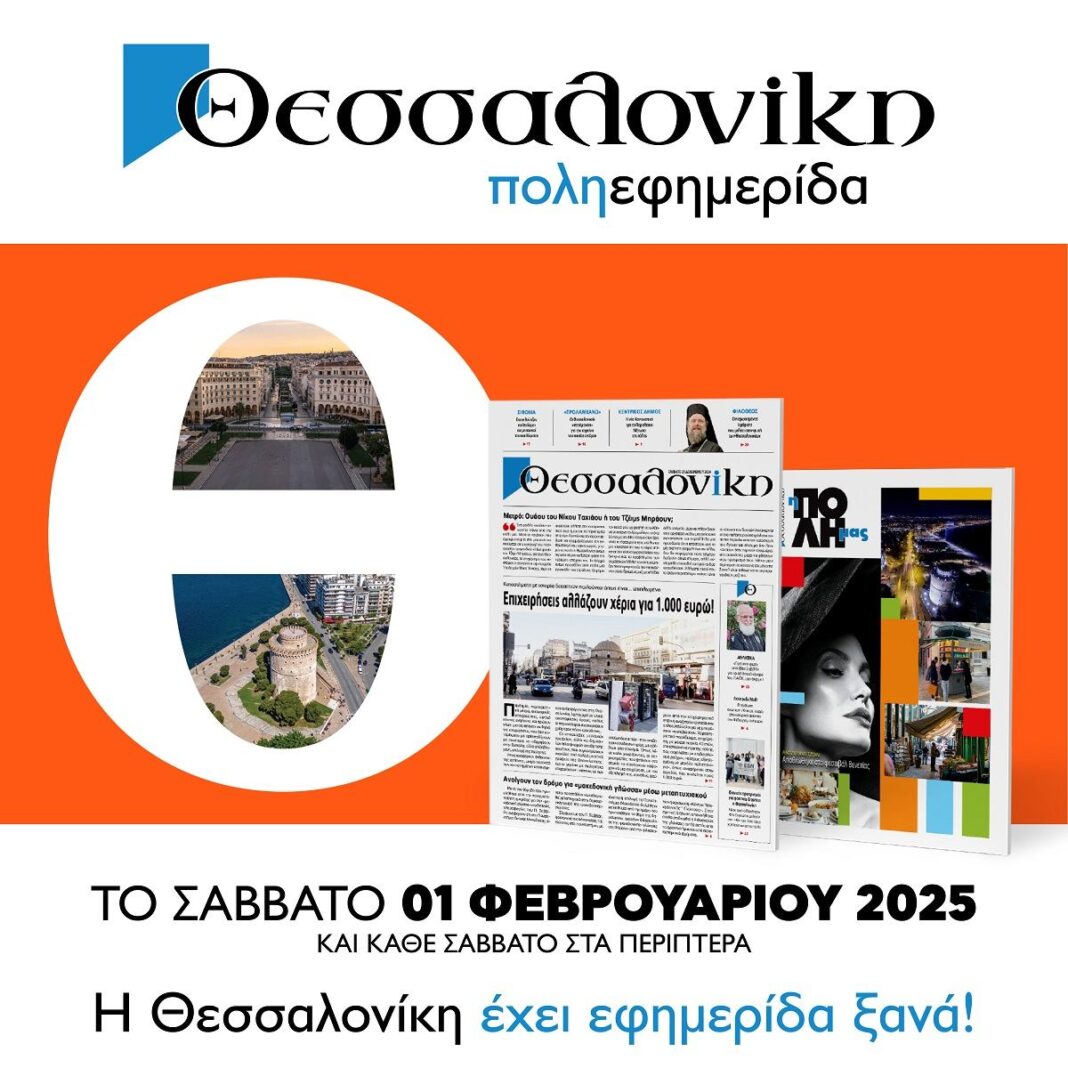 Από το Σάββατο 1η Φεβρουαρίου 2025 και κάθε Σάββατο, η νέα μεγάλη εφημερίδα «Θεσσαλονίκη» έρχεται για να γίνει η καλύτερη συνήθεια της εβδομάδας.