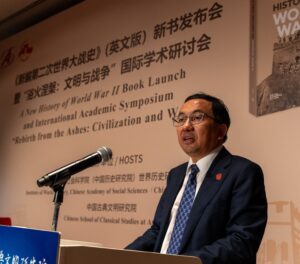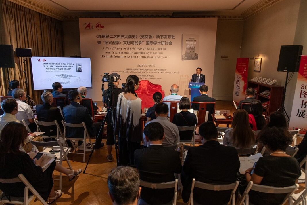 Στις 28 Αυγούστου πραγματοποιήθηκε στην Αθήνα η παρουσίαση του βιβλίου «Μια Νέα Ιστορία του Β΄ Παγκοσμίου Πολέμου» (A New History of World War II), σε συνδυασμό με διεθνές ακαδημαϊκό συμπόσιο με τίτλο «Αναγέννηση από τις Στάχτες: Πολιτισμός και Πόλεμος». Η εκδήλωση οργανώθηκε με αφορμή την 80ή επέτειο της νίκης του Πολέμου Αντίστασης του Κινεζικού Λαού κατά της Ιαπωνικής Επιθετικότητας και του Παγκόσμιου Αντιφασιστικού Πολέμου.