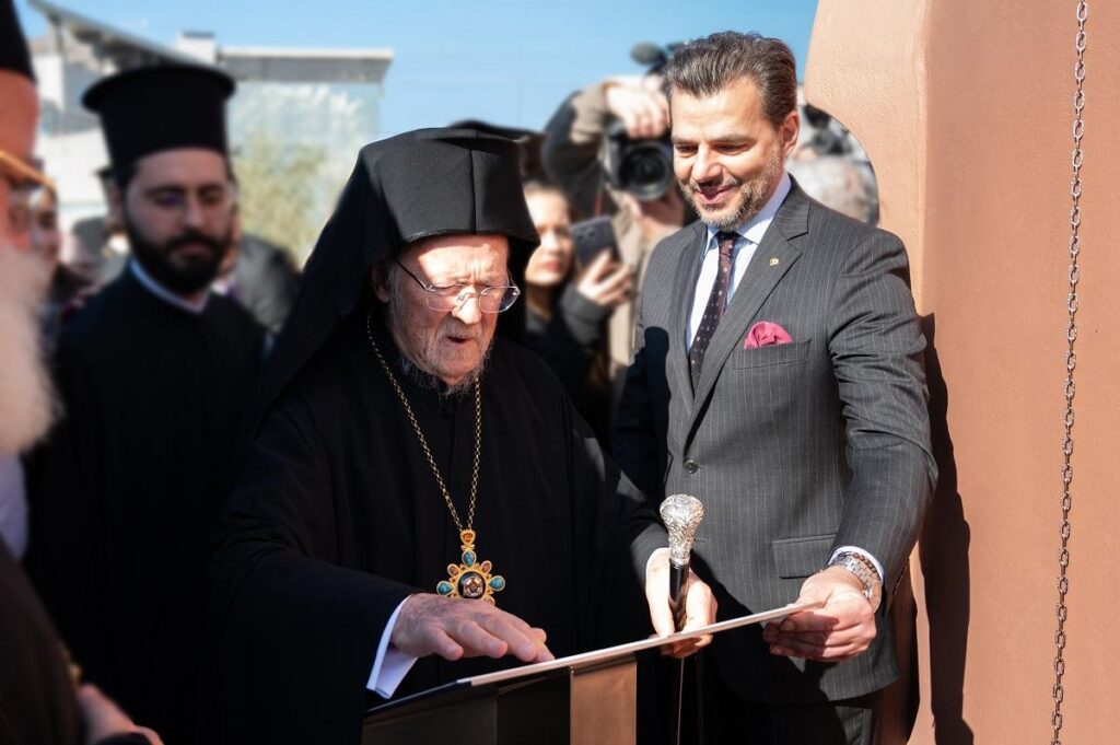 Στο πλαίσιο της τελετής, ο Οικουμενικός Πατριάρχης προέβη στην τοποθέτηση της αναμνηστικής πλάκας στον εξωτερικό χώρο του Ιερού Παρεκκλησίου, επισφραγίζοντας με τον τρόπο αυτό τον πνευματικό και συμβολικό χαρακτήρα της ημέρας.