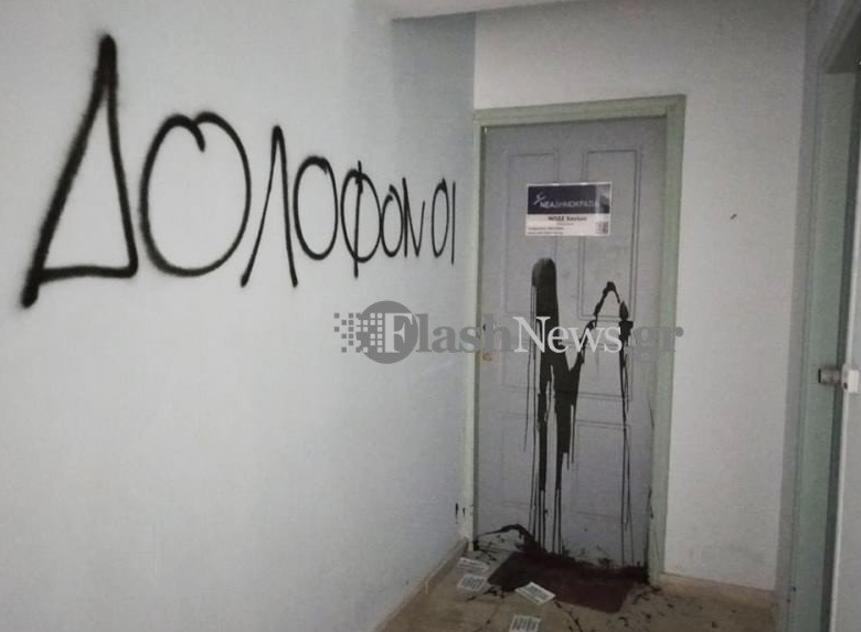 Χανιά: Επίθεση με συνθήματα και μπογιές σε πολιτικά γραφεία στα Χανιά