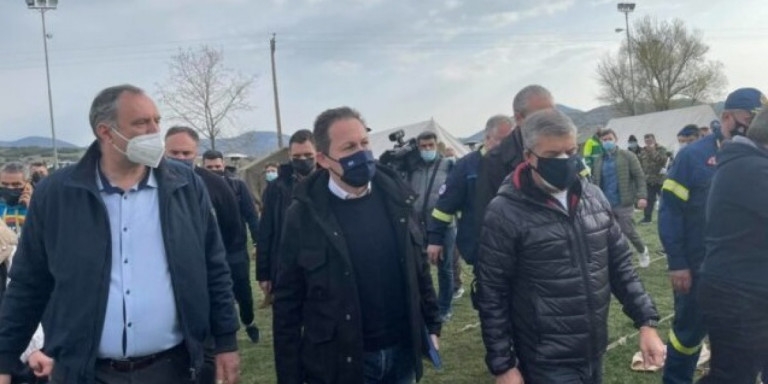 Ο υπουργός βρέθηκε στο χώρο του γηπέδου, όπου διαμένουν σεισμόπληκτοι και συνομίλησε με πολίτες. Σε προηγούμενες δηλώσεις του- είχε τονίσει ότι οι πληγέντες θα λάβουν άμεση αποζημίωση 600 με 6.000 ευρώ.