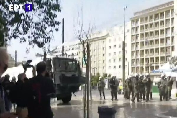 Σύμφωνα με την Αστυνομία, περίπου 200 άτομα επιχείρησαν να πραγματοποιήσουν συγκέντρωση στην πλατεία Συντάγματος στις 12 το μεσημέρι, αλλά οι ισχυρές αστυνομικές δυνάμεις τους εμπόδισαν να κλείσουν τους δρόμους και τους απώθησαν.