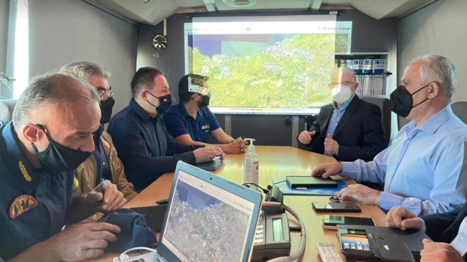 Το κυβερνητικό κλιμάκιο, με επικεφαλής τον αναπληρωτή υπουργό Εσωτερικών, Στέλιο Πέτσα, συμμετείχε σε ευρεία σύσκεψη στο κινητό επιχειρησιακό κέντρο της Πυροσβεστικής, στην παραλία Αλεποχωρίου, μαζί με εκπροσώπους της Τοπικής Αυτοδιοίκησης, στελέχη του Πυροσβεστικού Σώματος και της Πολιτικής Προστασίας, για μία πρώτη αποτίμηση των καταστροφών από την πυρκαγιά, προκειμένου να δρομολογηθούν, άμεσα, τα απαιτούμενα μέτρα αποκατάστασης και οι παρεμβάσεις που χρειάζονται στις πληγείσες περιοχές.