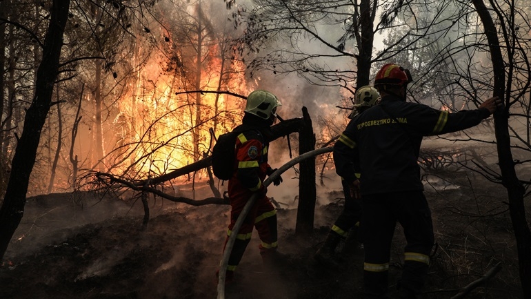 Οι συνθήκες είναι εξαιρετικά δύσκολες καθώς οι φλόγες είναι πολύ κοντά στα σπίτια.