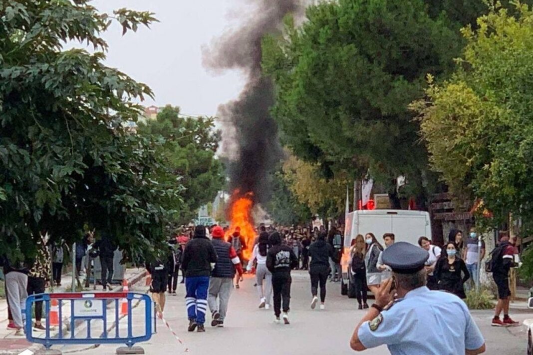 Επεισόδια σημειώθηκαν το πρωί έξω από το ΕΠΑΛ Ευόσμου στη δυτική Θεσσαλονίκη. Σύμφωνα με αστυνομικές πηγές, περίπου 100 μαθητές μπαινοέβγαιναν από το σχολικό συγκρότημα, ενώ άναψαν πυρσούς και έβαλαν φωτιά σε κάδους απορριμμάτων αποκλείοντας το δρόμο και δημιουργώντας φραγμό μπροστά από το σχολείο.