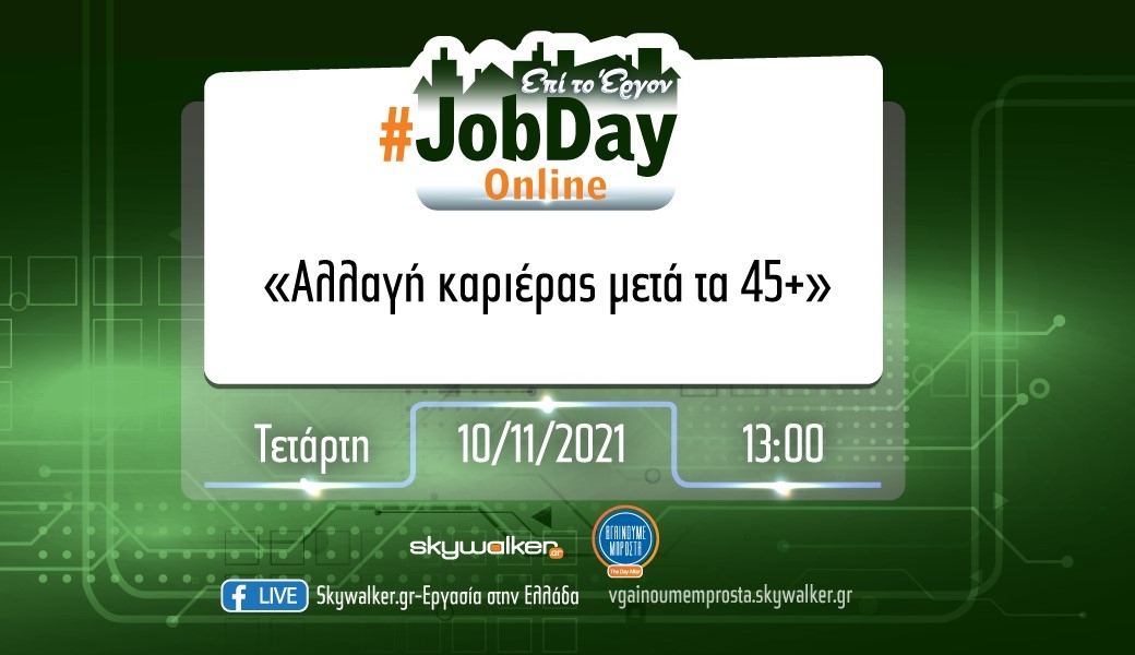 Επιπλέον, μπορούν να δουν το video του Online #JobDay «Αλλαγή καριέρας μετά τα 45+» σε αυτό το link.