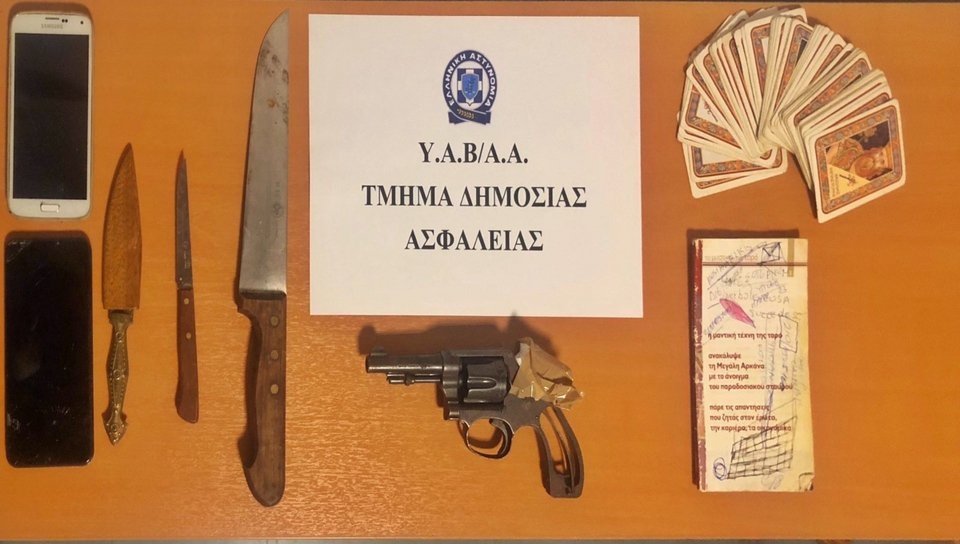 Οι αστυνομικοί από τις έρευνες που έκαναν στο αυτοκίνητο της εντόπισαν δύο μαχαίρια, ένα ξίφος θήκης , δύο κινητά τηλέφωνα, μία τράπουλα ταρώ, ένα βιβλιαράκι με την ένδειξη μεταξύ άλλων «η μαντική τέχνη της ταρώ» .