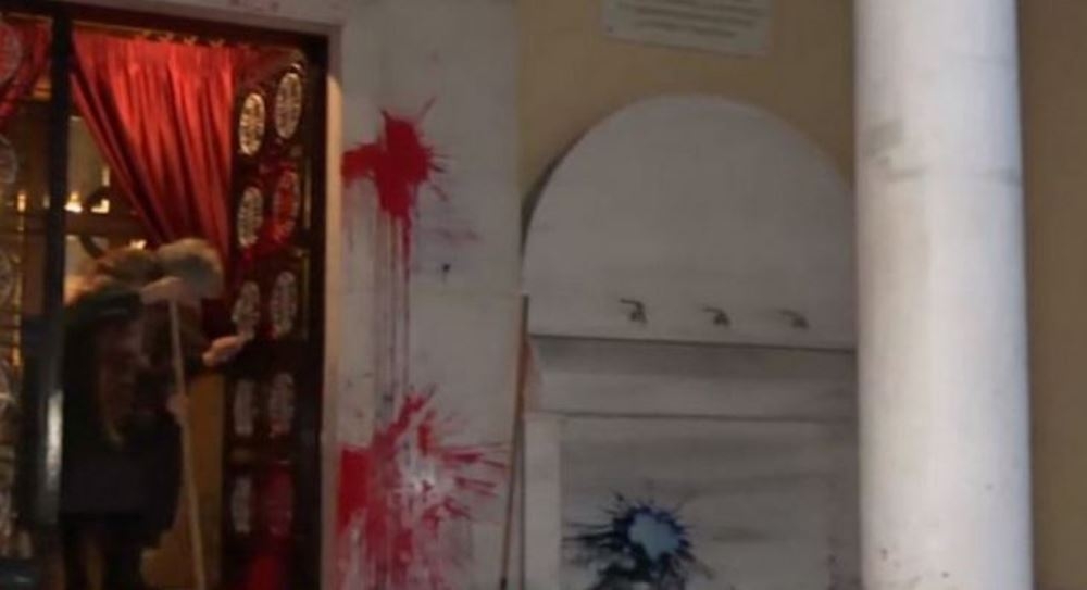 Οπως αναφέρει ο ΣΚΑΪ κατά τη διάρκεια της νύχτας άγνωστοι έριξαν μπογιές στην είσοδο της εκκλησίας.