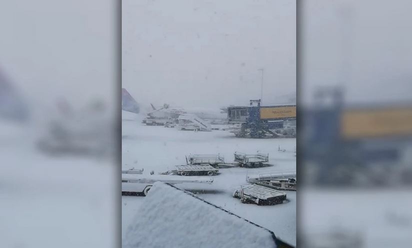 Το χιόνι έχει καλύψει την πίστα του αεροδρομίου.