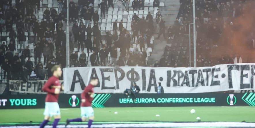 H σημαντική ευρωπαϊκή βραδιά του ΠΑΟΚ, επισκιάστηκε από ένα πανό που κρεμόταν για κάτι παραπάνω από 120 λεπτά μπροστά από τη Θύρα 4 στην Τούμπα. «Αδέρφια κρατάτε γερά», έγραφε με τεράστια και ευδιάκριτα γράμματα το πανό. Αρχικά οι περισσότεροι θέλησαν να πιστέψουν πως ήταν κάτι άλλο από το προφανές. Ότι αναφερόταν στον πόλεμο στην Ουκρανία. Ωστόσο, επιβεβαιώθηκαν οι εικασίες πως ήταν αυτό που φαινόταν. Ένα μήνυμα στους δολοφόνους του 19χρονου Άλκη Καμπανού που έχουν προφυλακιστεί.