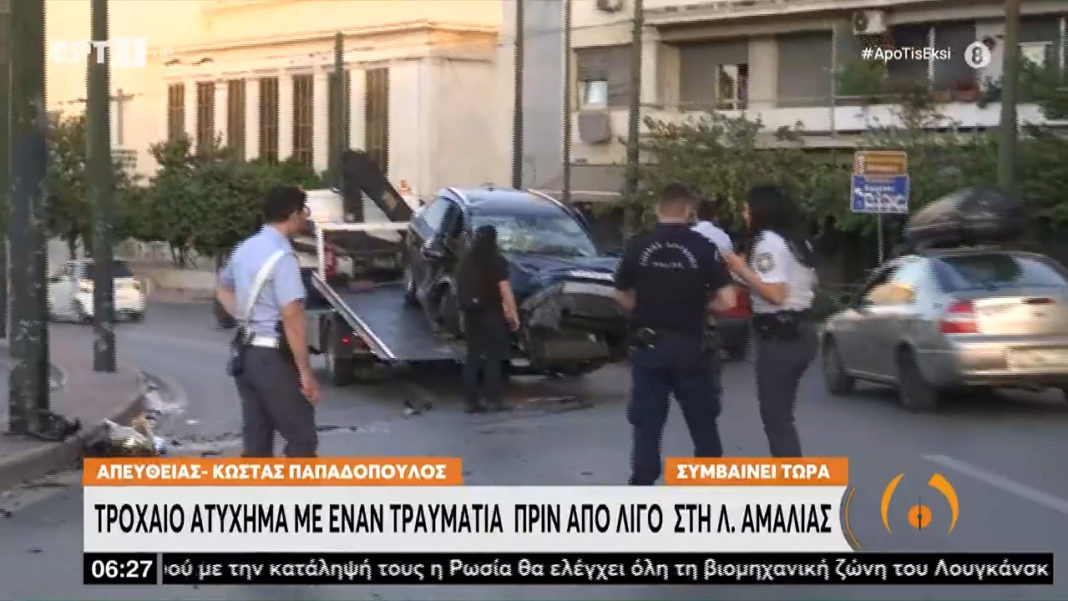 Τρεις άνθρωποι τραματίστηκαν σε σοβαρό τροχαίο που σημειώθηκε λίγο μετά τις 05.30 το πρωί στη λεωφόρο Αμαλίας.