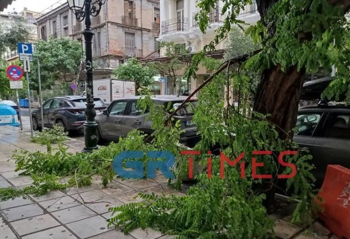 Πτώσεις δέντρων σημειώθηκαν νωρίτερα σε περιοχές κυρίως της ανατολικής Θεσσαλονίκης, λόγω της κακοκαιρίας που πλήττει από χθες την πόλη.