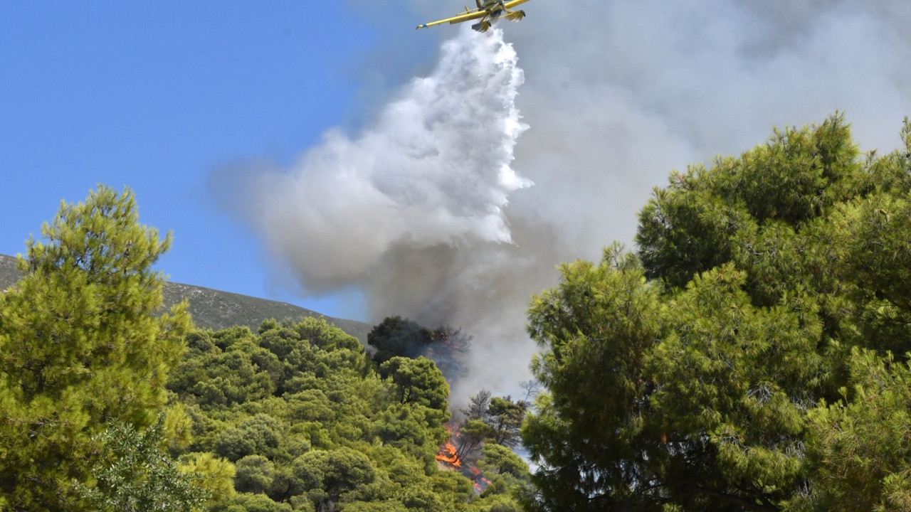 Παράλληλα, συνεχίζουν το έργο τους οι ισχυρές επίγειες πυροσβεστικές δυνάμεις, που αποτελούνται 118 πυροσβέστες, με έξι ομάδες πεζοπόρων τμημάτων και 35 οχήματα, οι οποίες επιχειρούσαν καθ΄ όλη την διάρκεια της νύχτας, προκειμένου να περιορίσουν την φωτιά και να την κρατήσουν μακριά από κατοικημένες περιοχές.