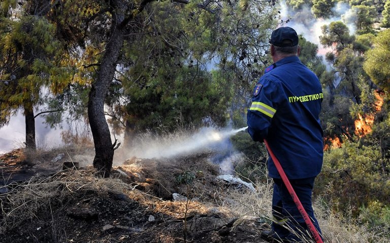 Σύμφωνα με την Πυροσβεστική, το μέτωπο της φωτιάς βρίσκεται κοντά σε κατοικημένη περιοχή, αλλά δεν την απειλεί άμεσα.