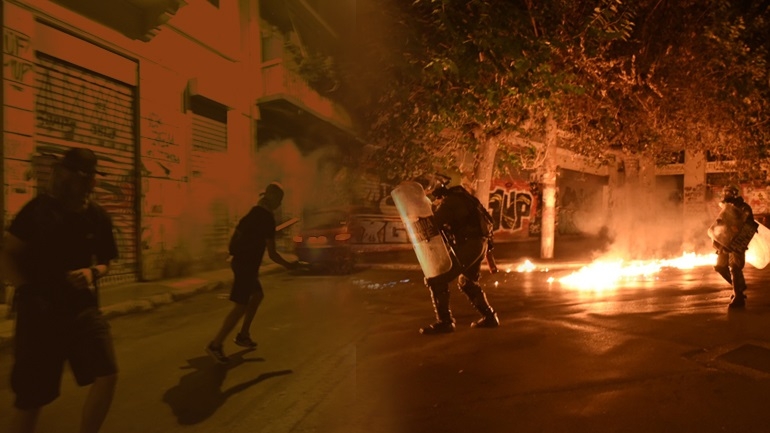 Όπως αναφέρεται σε συνέχεια της ανακοίνωσης της ΕΛ.ΑΣ., στις 20.10, οι συγκεντρωθέντες έχοντας καλυμμένα τα χαρακτηριστικά των προσώπων τους, επιτέθηκαν στις αστυνομικές δυνάμεις με μπογιές, πέτρες, καδρόνια, μπουκάλια και άλλα αντικείμενα, προκειμένου να τις διασπάσουν και να καταλάβουν όλο το οδόστρωμα, διαταράσσοντας έτσι την κυκλοφορία του κέντρου της Αθήνας.