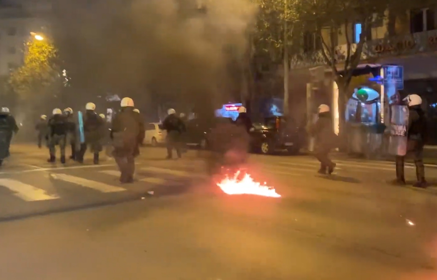 Στο ύψος του τουρκικού προξενείου, στην οδό Αποστόλου Παύλου, ομάδα ατόμων επιτέθηκε με μολότοφ και φωτοβολίδες εναντίον των αστυνομικών δυνάμεων, οι οποίες απάντησαν με χειροβομβίδες κρότου-λάμψης και χημικά. Στη συνέχεια, το σκηνικό της έντασης μεταφέρθηκε στην οδό Ολυμπιάδος. Έχουν προκληθεί ζημιές σε σταθμευμένα ΙΧ, ενώ οχήματα της Πυροσβεστικής Υπηρεσίας σπεύδουν στο σημείο για να σβήσουν τις φωτιές σε κάδους απορριμμάτων. Το θωρακισμένο όχημα εκτόξευσης νερού(αύρα) της Αστυνομίας που βρίσκεται στο σημείο συμμετέχει στις προσπάθειες κατάσβεσης.