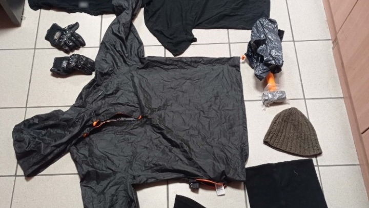 Στην κατοχή των δύο συλληφθέντων βρέθηκαν -μεταξύ άλλων- και κατασχέθηκαν τσάντες, εντός των οποίων υπήρχαν μαύρες κουκούλες τύπου full face, μαύρα μπουφάν με ενσωματωμένες κουκούλες (πέραν των μπουφάν που ήδη φορούσαν), γάντια μοτοσικλέτας και μία βαριοπούλα, η λαβή της οποίας ήταν τυλιγμένη με σακούλα.