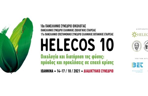 Η Ελληνική Οικολογική Εταιρεία, η Ελληνική Ζωολογική και η Ελληνική Βοτανική Εταιρεία συνδιοργανώνουν το HELECOS 10, με τίτλο «Οικολογία και Διατήρηση της Φύσης: πρόοδος και προκλήσεις σε εποχή κρίσης», που θα πραγματοποιηθεί διαδικτυακά στις 14-17 Οκτωβρίου 2021 υπό την αιγίδα του Πανεπιστημίου Ιωαννίνων.