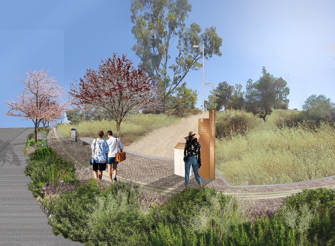 Στη μοναδική αυτή διαδρομή πολιτιστικού ενδιαφέροντος, διαμορφώνονται χώροι ανοιχτοί και προσβάσιμοι σε όλους με καθιστικά, σήμανση, πινακίδες πληροφόρησης, φωτισμό και φύτευση. Τα υλικά που χρησιμοποιούνται είναι οικολογικά, φιλικά στο περιβάλλον και εξασφαλίζουν την ασφαλή και άνετη πρόσβαση στο χώρο. Οι πινακίδες πληροφόρησης για κάθε μνημείο διαθέτουν το αντίστοιχο ενημερωτικό-επεξηγηματικό κείμενο φωτισμό και ανάγλυφο σύστημα Braille.