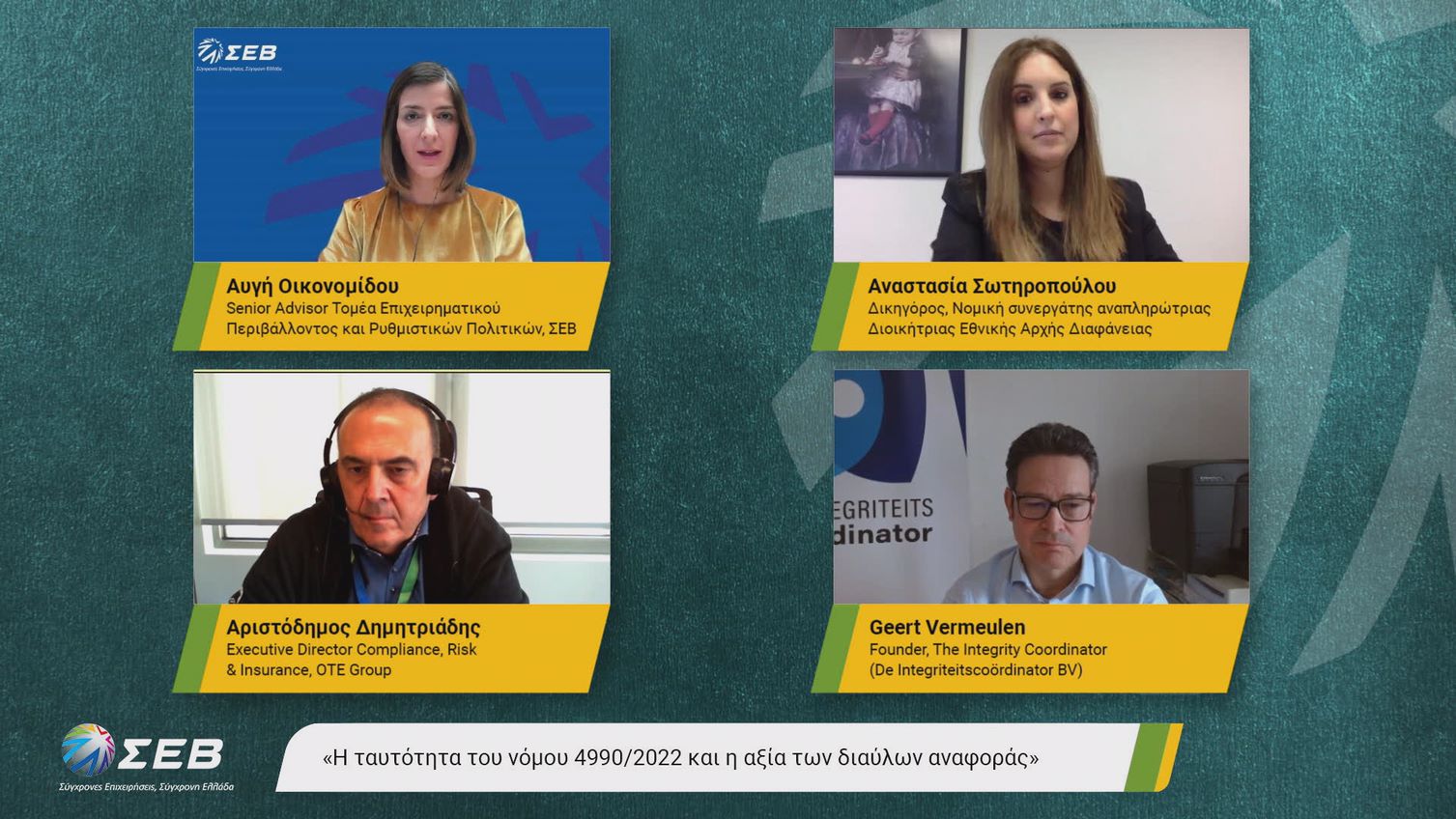 ΣΕΒ: Σημαντική πρόκληση η έγκαιρη συμμόρφωσή των επιχειρήσεων στο Νόμο 4990/2022 για το whistleblowing
