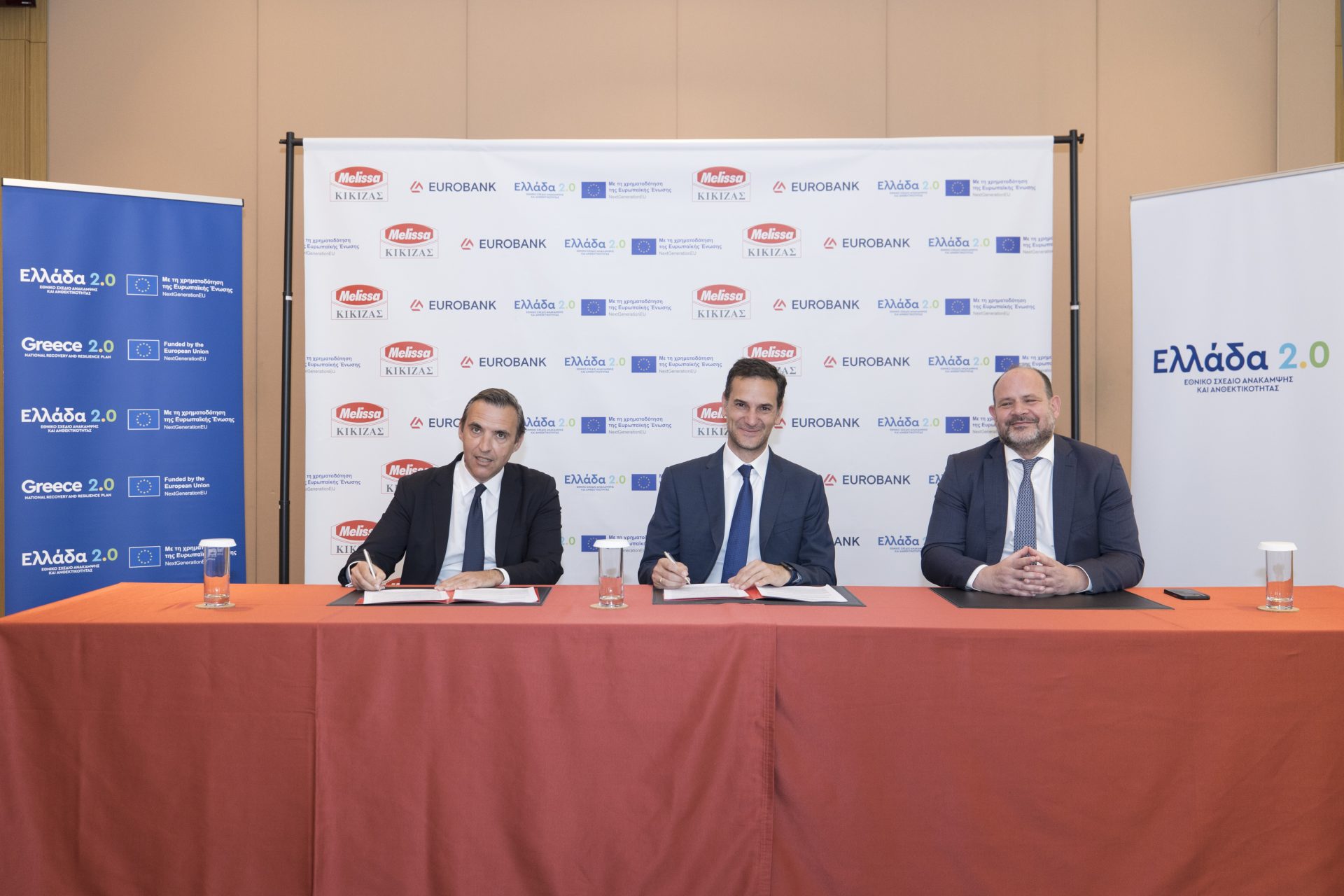 Η σύμβαση υπογράφηκε παρουσία του Διοικητή της Ειδικής Υπηρεσίας Συντονισμού του Ταμείου Ανάκαμψης (ΕΥΣΤΑ), κ. Νίκου Μαντζούφα, του Διευθύνοντος Συμβούλου της ΜΕΛΙΣΣΑ ΚΙΚΙΖΑΣ ΑΒΕΕΤ, κ. Αλέξανδρου Κίκιζα, και του Αναπληρωτή Διευθύνοντος Συμβούλου της Eurobank, κ. Κωνσταντίνου Βασιλείου, στο κτίριο Διοίκησης της Eurobank στο Μποδοσάκειο Μέγαρο.