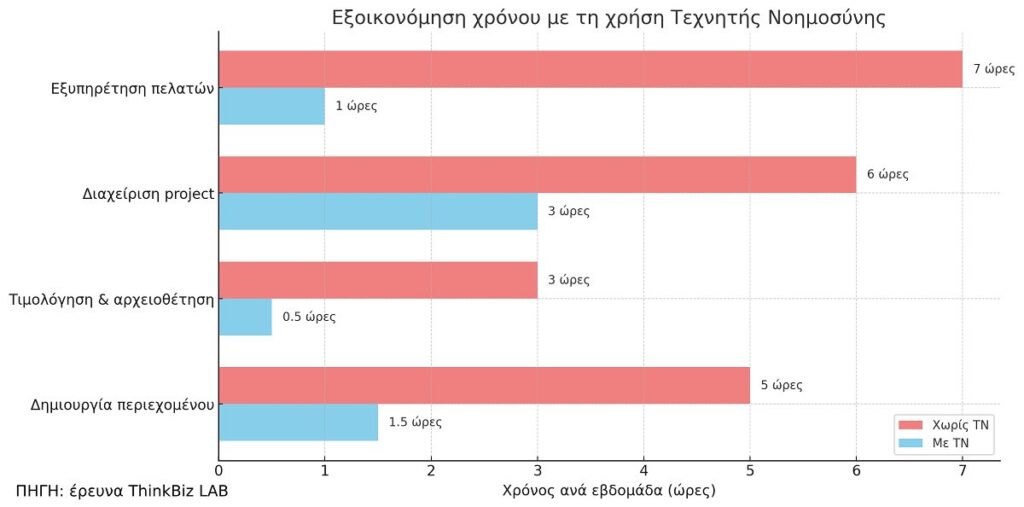 Στο πλαίσιο αυτό, η Τεχνητή Νοημοσύνη (Τ.Ν.) δεν είναι απλώς μια τεχνολογική εξέλιξη. Είναι ένα εργαλείο μετρήσιμης παραγωγικότητας, όπως αναφέρουν οι ειδικοί. Δεν απαιτεί απαραίτητα ακριβές επενδύσεις ή υψηλό τεχνολογικό επίπεδο. Πολλές από τις εφαρμογές της Τ.Ν. είναι ήδη διαθέσιμες, αρκετές είναι δωρεάν μάλιστα, είναι εύκολες στη χρήση τους και απευθύνονται τόσο σε μεγάλες όσο και σε μικρομεσαίες, ακόμη και στις πολύ μικρές επιχειρήσεις.