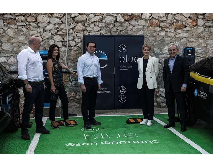 – την τοποθέτηση 4 δημόσιων προσβάσιμων σημείων φόρτισης της ΔΕΗBlue, που θα συμβάλλουν στην εξάλειψη των θερμικών κινητήρων και στη μείωση του κλιματικού αποτυπώματος του τομέα των μεταφορών στο νησί. Επιπλέον, με την ψηφιακή εμπειρία ΔΕΗ Blue (DEI blue) η φόρτιση γίνεται μια εύκολη και απλή διαδικασία για τους κατοίκους και τους επισκέπτες του νησιού.