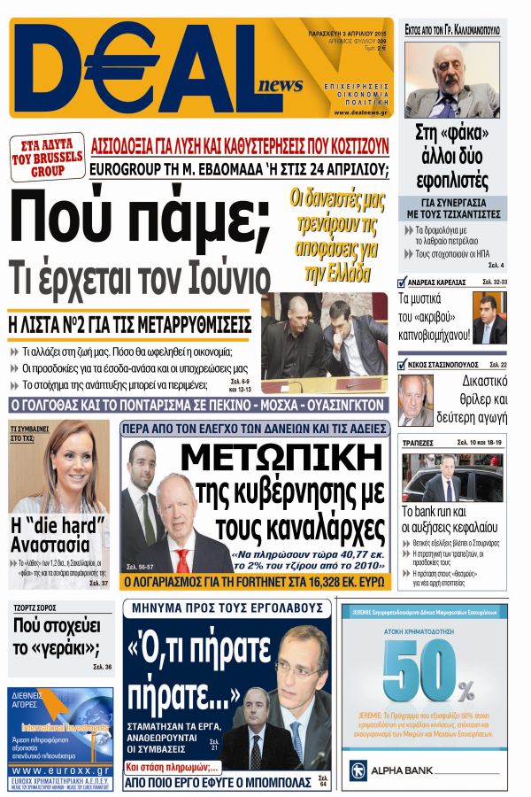 Deal news. Η οικονομική , επιχειρηματική και πολιτική έγκυρη εφημερίδα.