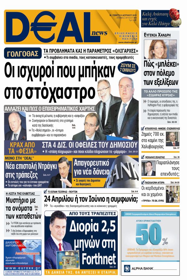 Deal news. Η οικονομική , επιχειρηματική και πολιτική έγκυρη εφημερίδα.