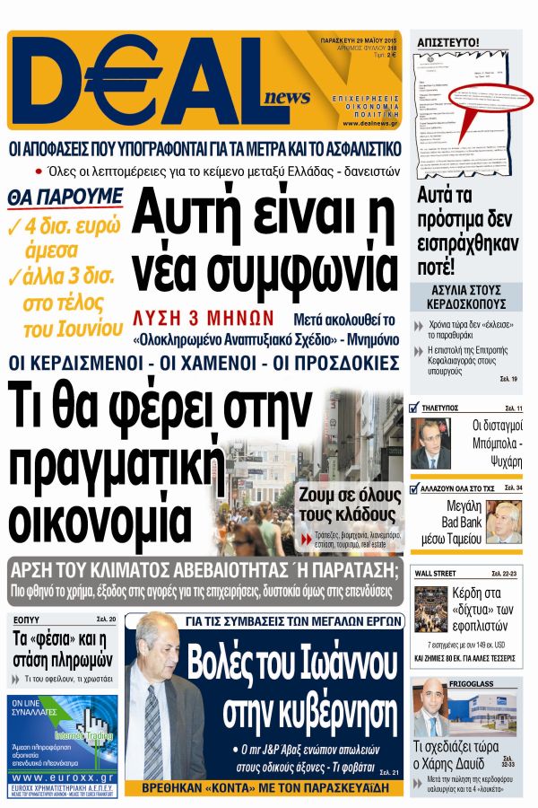 Deal news. Η οικονομική , επιχειρηματική και πολιτική έγκυρη εφημερίδα.