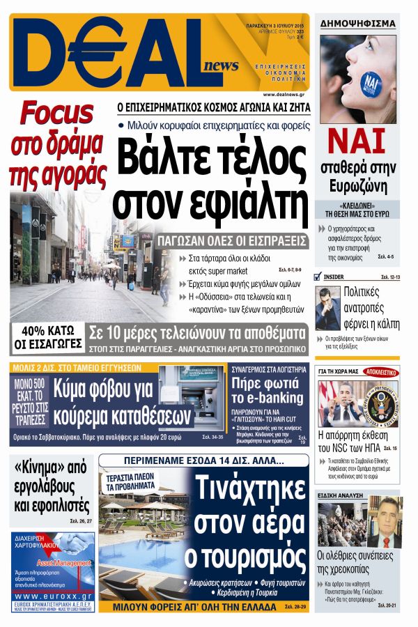 Deal news. Η οικονομική , επιχειρηματική και πολιτική έγκυρη εφημερίδα.