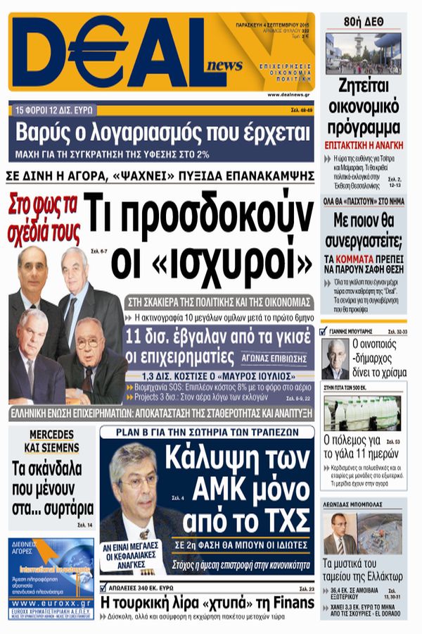 Deal news. Η οικονομική , η έγκυρη επιχειρηματική και πολιτική εφημερίδα.