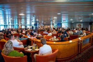 Αμέσως μετά οι βραβευθέντες μαθητές και όλοι οι παριστάμενοι που κατέκλυσαν το «ΚΡΗΤΗ ΙΙ» απόλαυσαν ένα πλούσιο κρητικό κέρασμα, το οποίο απετέλεσε την αφορμή μίας μικρής έκπληξης. Συγκεκριμένα, η κα Καμνάκη τίμησε συμβολικά στο τέλος της τελετής, με ξεχωριστά μετάλλια όλο το έμπειρο πλήρωμα του πλοίου για την ευγένεια και τον επαγγελματισμό τους, επιβεβαιώνοντας – για μία ακόμα φορά – ότι ΑΝΕΚ και Κρητική φιλοξενία είναι ένα