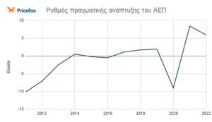 Ωστόσο, το 2020, λόγω της πανδημίας του COVID-19, η οικονομία υποχώρησε και παρουσίασε αρνητικό ρυθμό ανάπτυξης (-9%). Το 2021 και το 2022, η Ελλάδα παρουσιάζει ανάκαμψη, με ρυθμούς ανάπτυξης 8.4% και 5.9% αντίστοιχα.