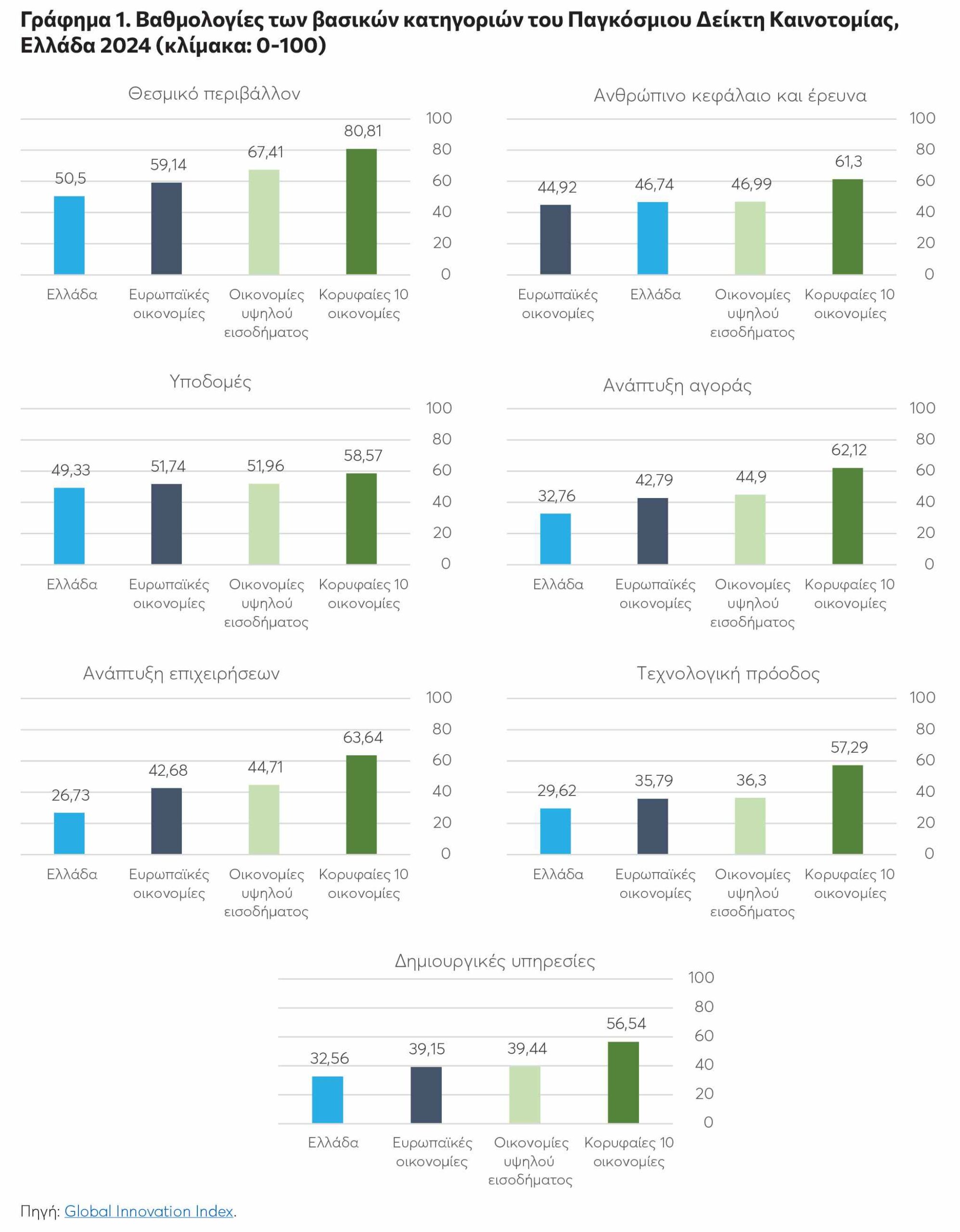 Ο δείκτης αξιολογεί την ικανότητα κάθε χώρας να παράγει καινοτομία, λαμβάνοντας υπόψη παράγοντες όπως η έρευνα, η τεχνολογική πρόοδος, η επιχειρηματική ανάπτυξη και η ποιότητα των θεσμών.