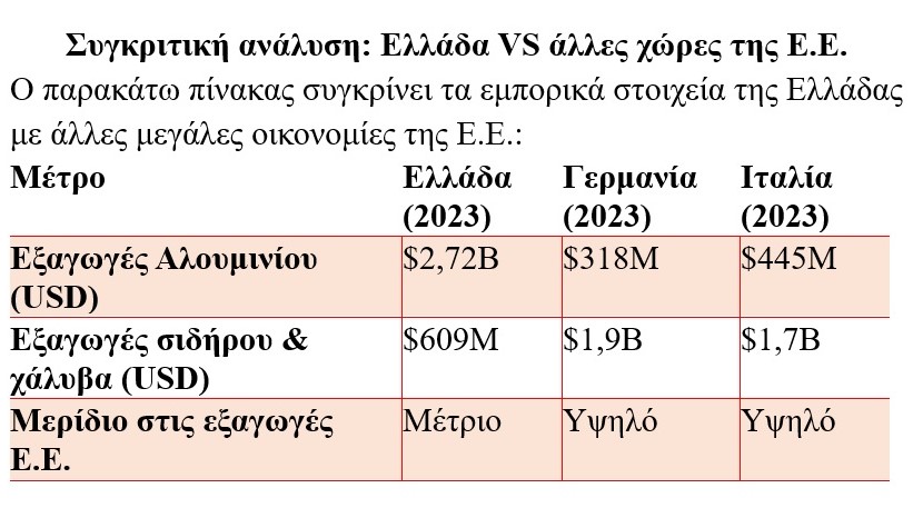 Η Ε.Ε. διακρίνεται ως ένας από τους μεγαλύτερους προμηθευτές χάλυβα και αλουμινίου προς τις Ηνωμένες Πολιτείες, καθιστώντας την ιδιαίτερα ευάλωτη σε αυτούς τους δασμούς.