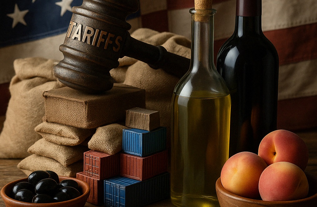 Στον κλάδο τροφίμων που έχει τις υψηλότερες εξαγωγές στις ΗΠΑ (€3,2 δις σωρευτικά την περίοδο 2019-2024, καλύπτοντας 7% των εξαγωγών τροφίμων) εντοπίζονται 9 ευάλωτα προϊόντα βάσει των άνω κριτηρίων. Τα κυριότερα είναι οι ελιές και το ελαιόλαδο, με σωρευτικές εξαγωγές από €1 δις το καθένα στην εξαετία προς τις ΗΠΑ (και έκθεση της τάξης του 20-30%). Σημειώνεται ότι στις άνω εξαγωγές ελαιόλαδου λαμβάνονται υπόψη εκτιμώμενες έμμεσες ροές προς τις ΗΠΑ (της τάξης των €0,7 δις) μέσω Ιταλίας-Ισπανίας (οι οποίες απορροφούν 70% των ελληνικών εξαγωγών, αξιοποιώντας το στη δική τους παραγωγή τυποποιημένου ελαιόλαδου). Λοιπά τρόφιμα με υψηλή έκθεση στις ΗΠΑ είναι το κρασί (17%) και φρούτα όπως ροδάκινα (επεξεργασμένα) ακτινίδια και σύκα (10%).