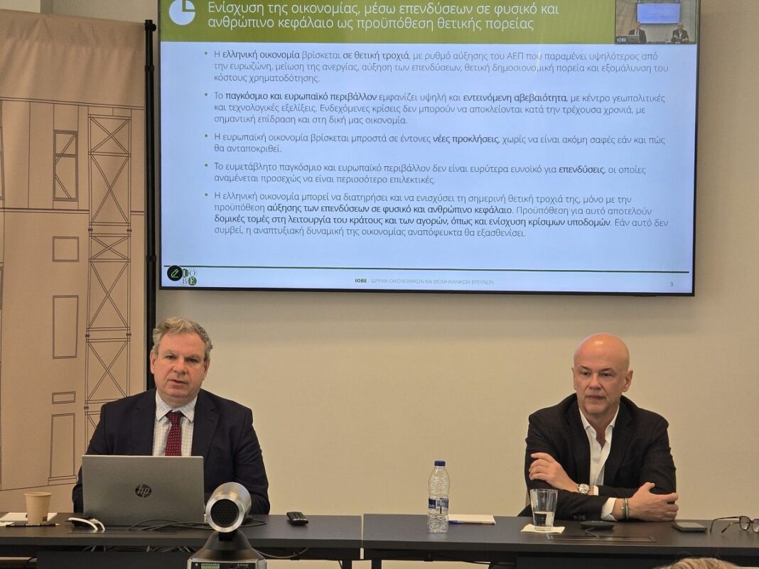 – Η ελληνική οικονομία μπορεί να διατηρήσει και να ενισχύσει τη σημερινή θετική τροχιά της μόνο με την προϋπόθεση αύξησης των επενδύσεων. Προϋπόθεση γι’ αυτό αποτελούν δομικές τομές στη λειτουργία του κράτους και των αγορών, όπως και ενίσχυση κρίσιμων υποδομών. Εάν αυτό δεν συμβεί, η αναπτυξιακή δυναμική της οικονομίας αναπόφευκτα θα εξασθενίσει.