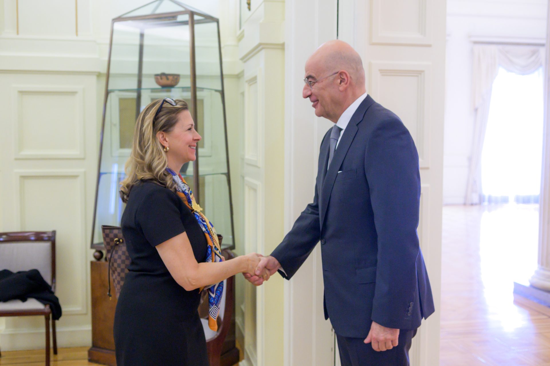 Ο υπουργός Εξωτερικών Νίκος Δένδιας υποδέχθηκε σήμερα στο υπουργείο τη νέα πρεσβευτή του Καναδά στην Ελλάδα, Καρίν Ασελίν (Karine Asselin). Κατά τη συνάντηση, ο Ν. Δένδιας ευχήθηκε στην Καναδή πρέσβη καλή επιτυχία στη θητεία της.