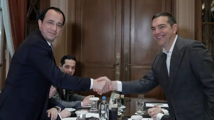Ειδικότερα, ο πρόεδρος του ΣΥΡΙΖΑ ΠΣ ευχήθηκε καλή επιτυχία στον νέο Πρόεδρο. Τόνισε ότι ο ψυχρός πόλεμος κόστισε ακριβά στον ελληνισμό και η ανάγκη για συντονισμό και συνεργασία Ελλάδας και Κυπριακής Δημοκρατίας, ως πυλώνες ειρήνης και σταθερότητας, σήμερα που ο κόσμος βρίσκεται για μια ακόμη φορά μπροστά σε έναν νέο ψυχρό πόλεμο είναι πιο σημαντική από ποτέ. Παράλληλα, καλωσόρισε τη στήριξη του νέου Προέδρου της Κύπρου στην επανεκκίνηση συνομιλιών για δίκαιη και βιώσιμη λύση του Κυπριακού στη βάση των Αποφάσεων του ΟΗΕ, από το σημείο όπου διεκόπησαν στο Κρανς Μοντανά. Εξέφρασε την πεποίθηση ότι η πρόταση του κ. Χριστοδουλίδη για ενεργό συμμετοχή της Ευρωπαϊκής Ένωσης στη διαδικασία διαπραγματεύσεων του Κυπριακού μπορεί να λειτουργήσει θετικά, υπογραμμίζοντας ότι χάρη στις κοινές προσπάθειες της Κυπριακής Δημοκρατίας με την τότε κυβέρνηση ΣΥΡΙΖΑ η συμμετοχή αυτή κατοχυρώθηκε στις διαπραγματεύσεις στο Κραν Μοντανά.