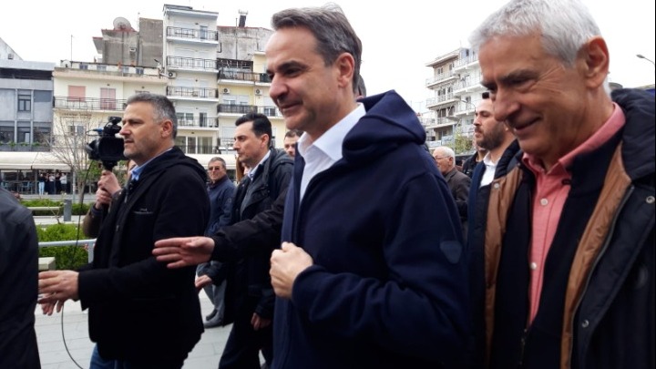 Ο κύριος Μητσοτάκης περπάτησε στην κεντρική πλατεία και συνομίλησε με πολίτες.