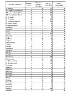 Στην ίδια εγκύκλιο περιλαμβάνεται πίνακας με τον αριθμό, μεταξύ άλλων, των σταυρών και των εδρών ανά εκλογική περιφέρεια: