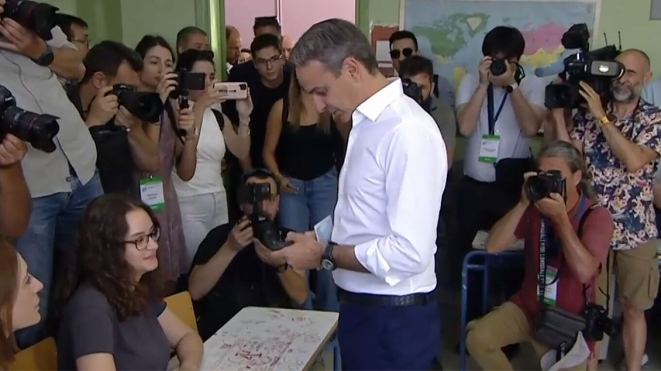 Πλήθος κόσμου υποδέχτηκε τον πρόεδρο της Νέας Δημοκρατίας με χειροκροτήματα στο εκλογικό τμήμα της Κηφισιάς. Τον Κυριάκο Μητσοτάκη συνοδεύουν όπως και στις περασμένες εκλογές τα δυο από τα τρία παιδιά του, η Δάφνη και ο Κωνσταντίνος.