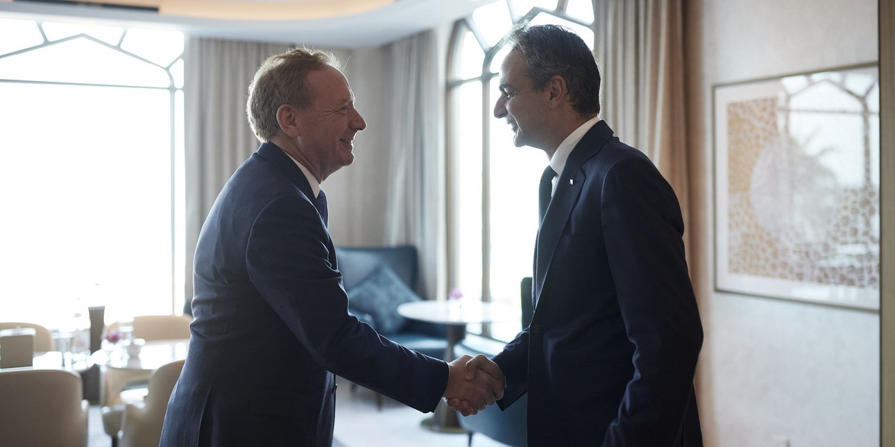 Ο Πρωθυπουργός Κυριάκος Μητσοτάκης συναντήθηκε με τον Αντιπρόεδρο ΔΣ και Πρόεδρο της Microsoft Brad Smith, στο περιθώριο της 28ης Διάσκεψης του ΟΗΕ για την Κλιματική Αλλαγή (COP28) στο Ντουμπάι.