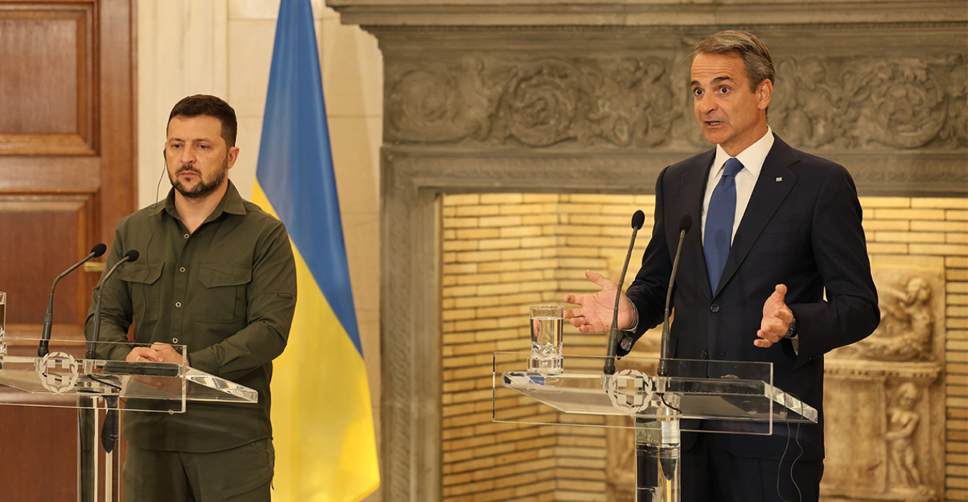 Ο πρωθυπουργός Κυριάκος Μητσοτάκης θα υποδεχθεί σήμερα στις 13:45 στο Μέγαρο Μαξίμου τον πρόεδρο της Ουκρανίας, Βολοντίμιρ Ζελένσκι, ο οποίος πραγματοποιεί επίσημη επίσκεψη στην Αθήνα. Το πρόγραμμα περιλαμβάνει κατ’ ιδίαν συνάντηση των δύο ηγετών, κοινές δηλώσεις προς τα ΜΜΕ και διευρυμένες συνομιλίες ανάμεσα στις αντιπροσωπείες των δύο πλευρών.